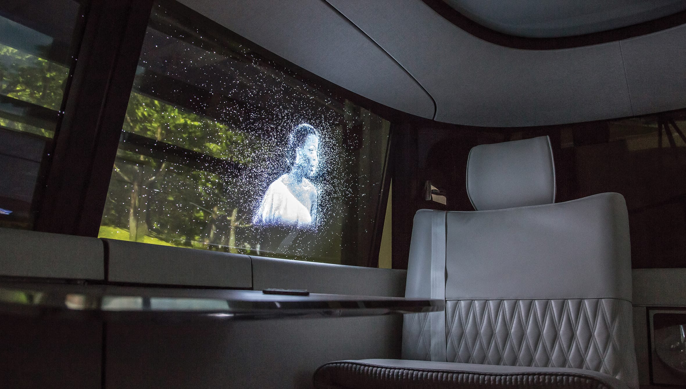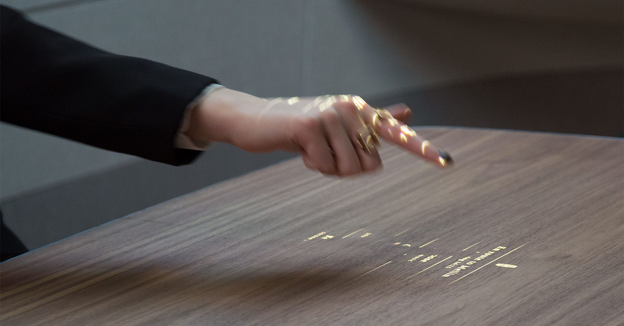 User interfaces, appearing only when contextually relevant, are woven beautifully into the very fabric and texture of the interior; Multi-modal interactions such as touch and voice are combined with high resolution displays and projections hidden within the table veneers, windows and seating to avoid visual overload and promote a calming, revitalising environment.